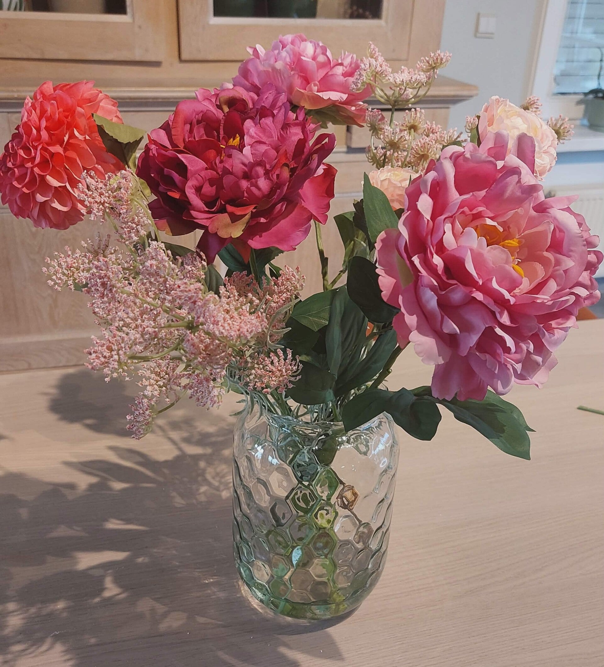 De zijdebloemen zijn natuurgetrouw vormgegeven en behouden hun kleur en vorm zonder onderhoud. Ideaal voor in een vaas op tafel, een dressoir of als blijvende decoratie in huis, kantoor of winkelruimte.